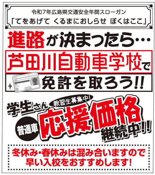 進路が決まったら芦田川自動車学校で免許を取ろう! | お知らせ情報 | 広島県東部・福山市での免許取得なら公認 芦田川自動車学校