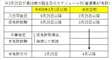 〇早生まれの方も、3月末までの免許取得が可能となります。
